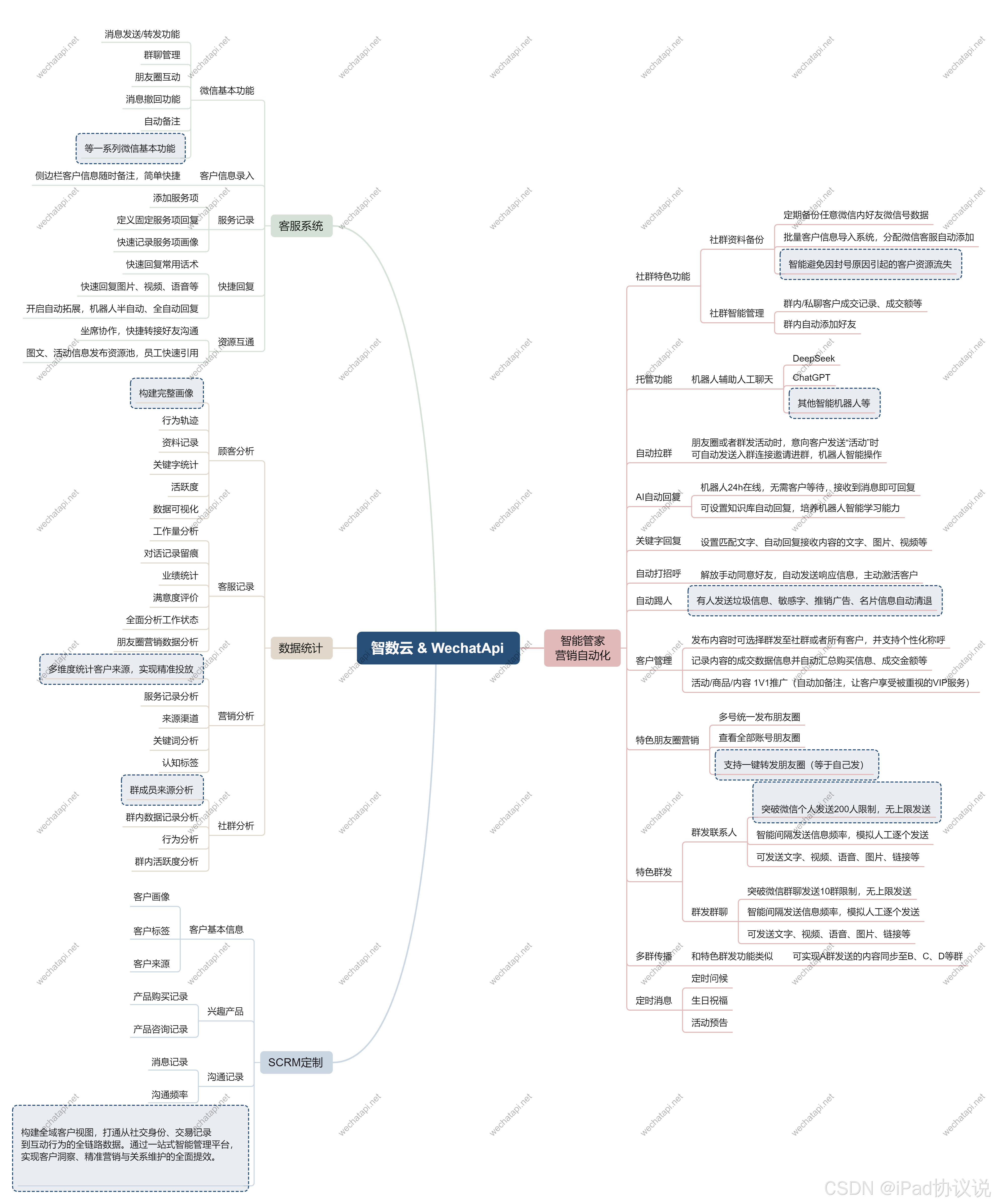 核心能力: 基于WechatAPI的稳定连接,实现与企业内部系统(如CRM、OA、电商平台)的安全数据互通。