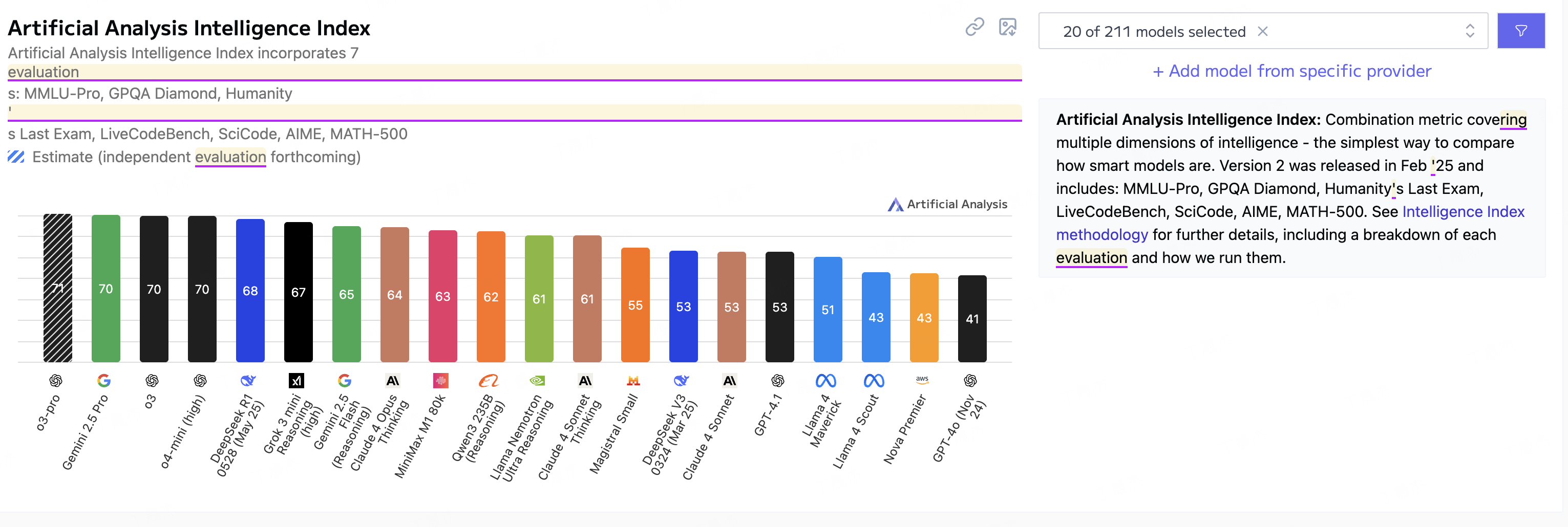 LLM测评榜模块建立了权威的大语言模型评估生态系统,整合了核心评测平台,为模型选择提供科学的量化决策依据。该模块以LMArena实时对战排行榜、Artificial Analysis性能分析平台为核心,结合OpenCompass司南开源评测框架、AGI-Eval通用智能评估社区等专业工具,构建了多维度、全方位的模型评估体系。评测范围涵盖语言理解、逻辑推理、数学计算、代码生成、多语言处理、安全性检测等关键能力指标,特别包含LiveCodeBench实时代码能力测试、MMBench多模态理解评估等前沿评测工具。