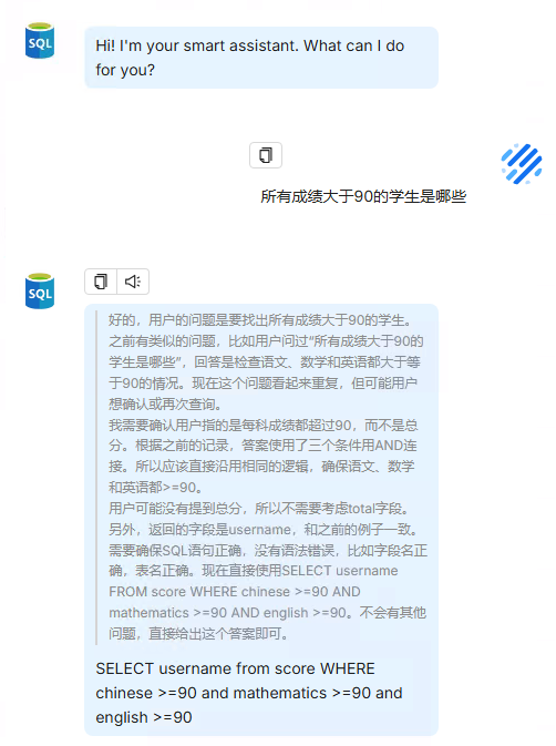 经过以上步骤,我们就成功地在 RAGflow 中搭建了一个 text-to-sql 的 AI 研发助手。接下来,就可以使用这个助手进行自然语言到 SQL 的转换,快速查询数据库中的数据了。