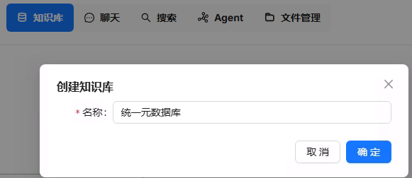 首先,配置 DDL 知识库。在 RAGflow 界面中,点击 “知识库”,然后选择 “创建知识库”。在弹出的创建知识库页面,为知识库命名,比如 “统一元数据库” 。