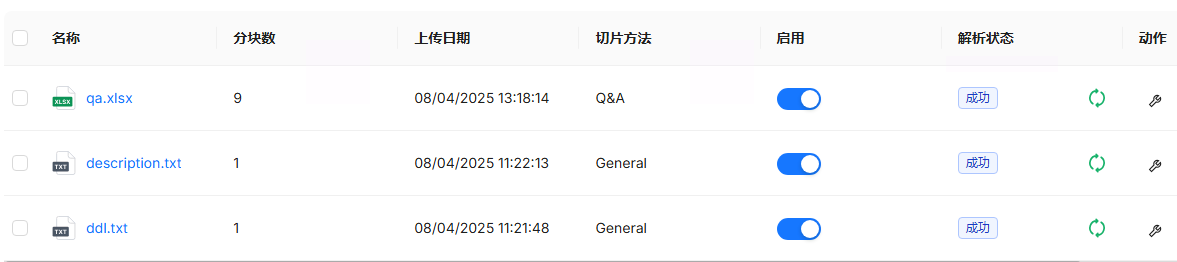 准备好这 3 类核心知识库数据后,我们就可以将其导入到 RAGflow 中,为后续搭建 text-to-sql 的 AI 研发助手做好充分准备。