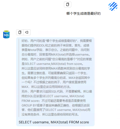 从测试的结果来来看,deepseek+ragflow 可以很好的完成sql语句的输出,但是前提条件是给它需要足够多的Golden statement,如果某个问题和