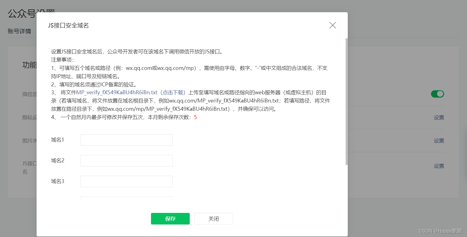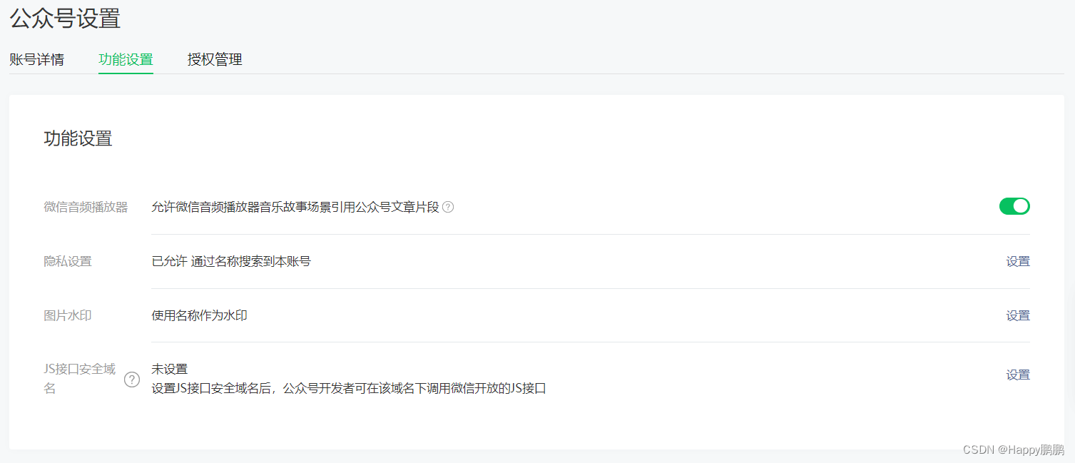 1.1.3进入公众号设置页面-功能设置tab页进行配置相关功能。