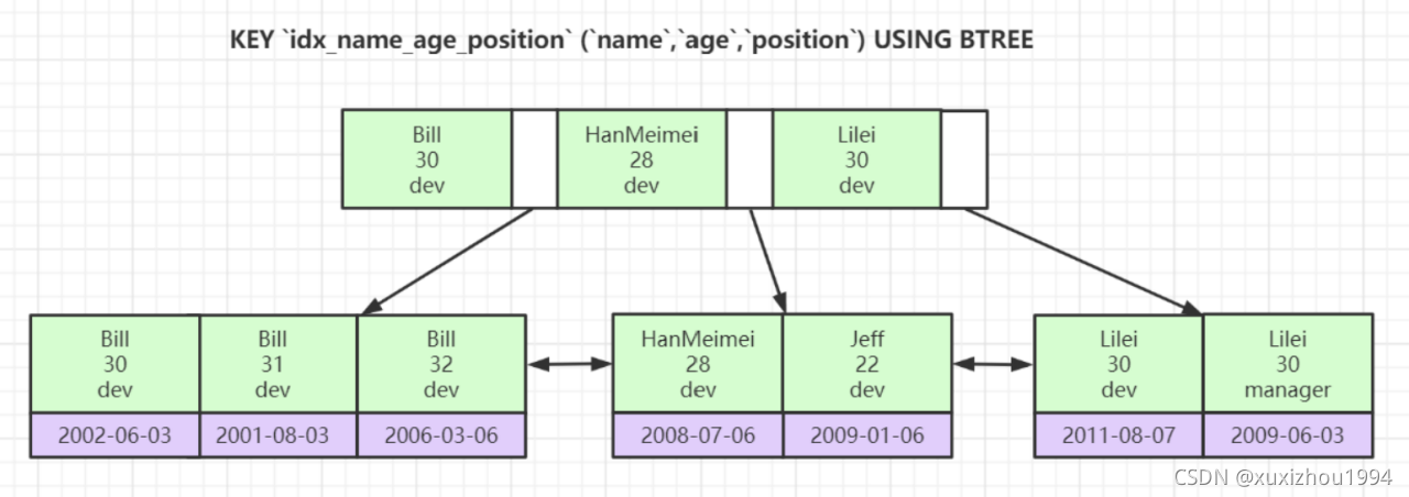 联合索引的底层存储结构: