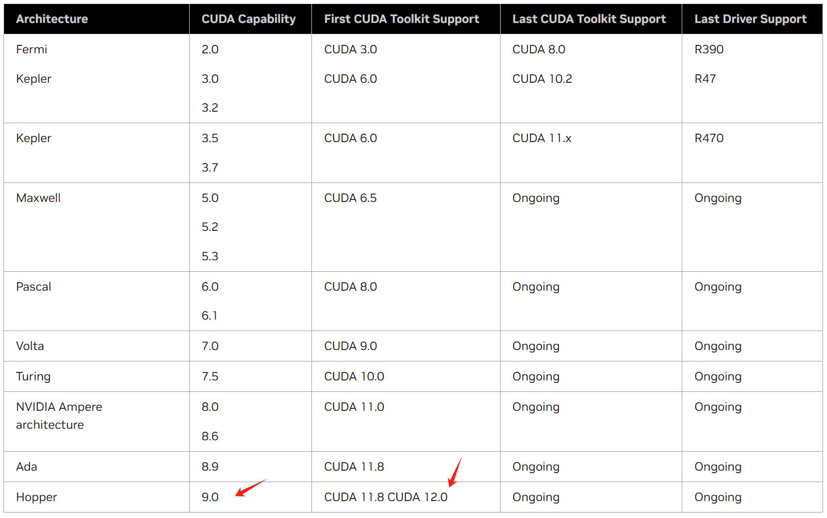 https://docs.nvidia.com/datacenter/tesla/drivers/index.html#cuda-arch-matrix