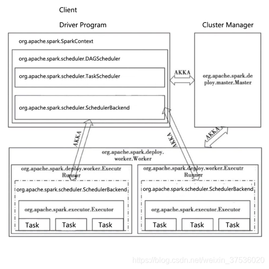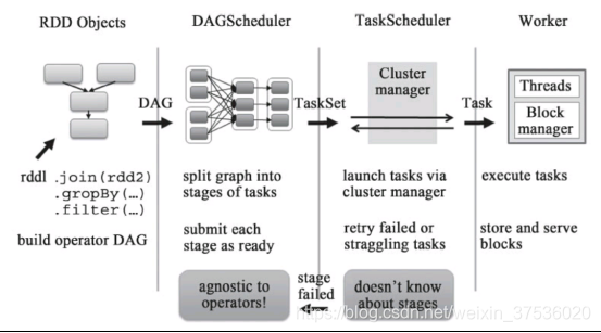从DAGScheduler接收不同Stage的任务。向Cluster Manager 申请资源。然后Cluster Manager收到资源请求之后,寻找符合条件的Worker,并在该Worker上启动Executor