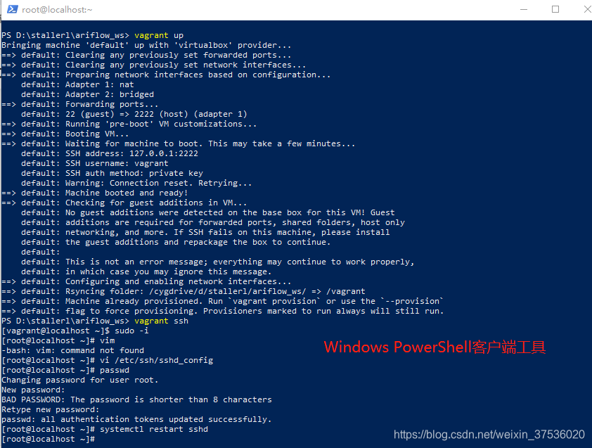 vagrant ssh 进入到虚拟机中