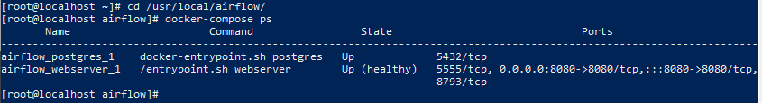 - 在/usr/local/airflow目录下执行docker-compose up -d,启动docker-compose容器;