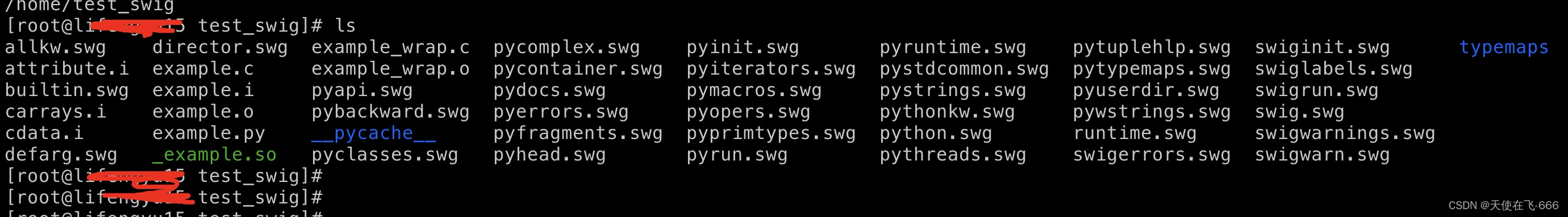 创建独立测试目录 /home/test_swig;拷贝可执行程序swig到上面的/home/test_swig目录,执行过程中可能会报错,直接去tensorflow路径下找对应的文件就可以了,肯定能找到的,找到后拷贝到一起的样子如下: