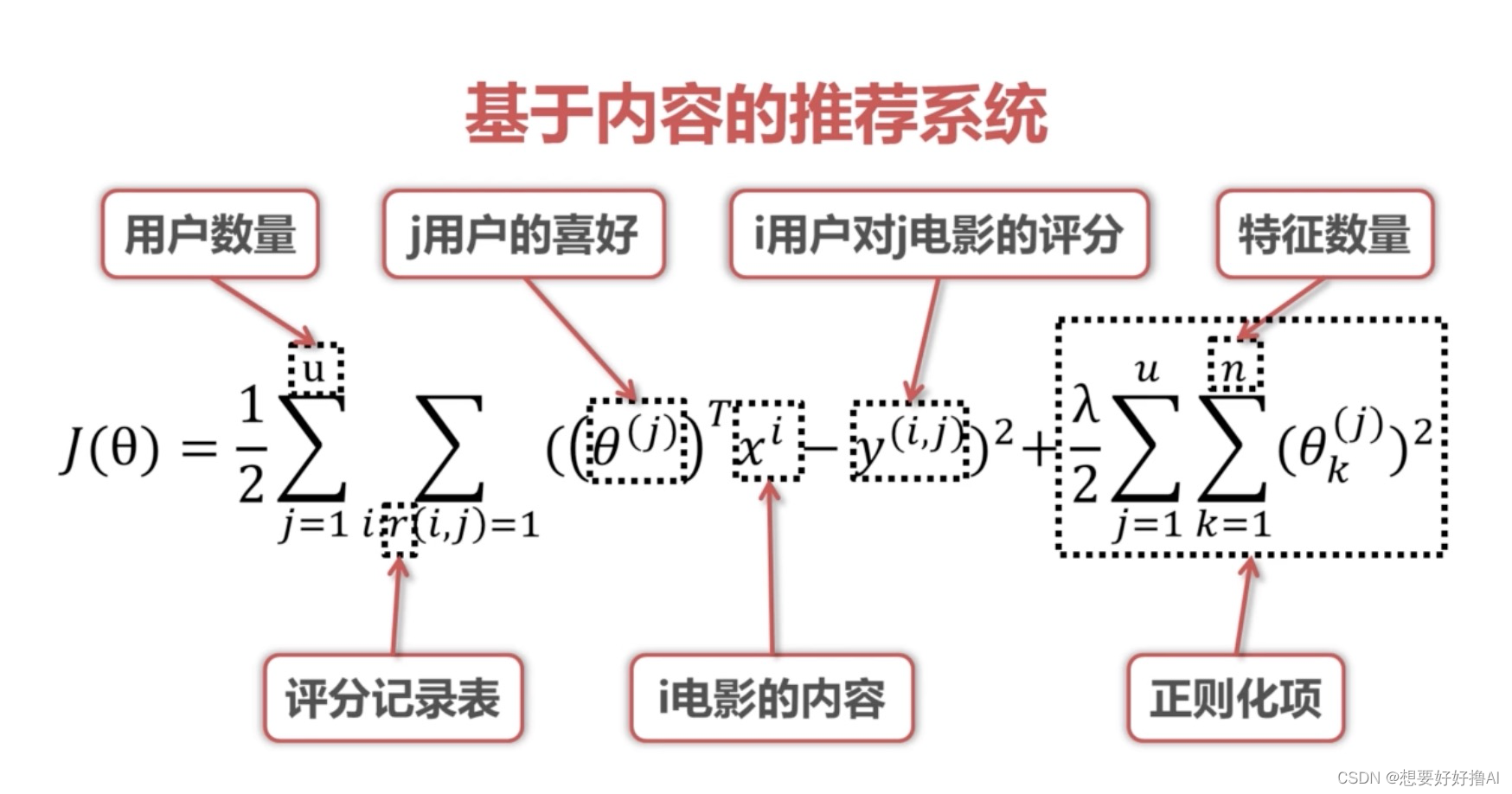 - j用户喜好 * i电影内容 = 预测j用户对i电影的评分