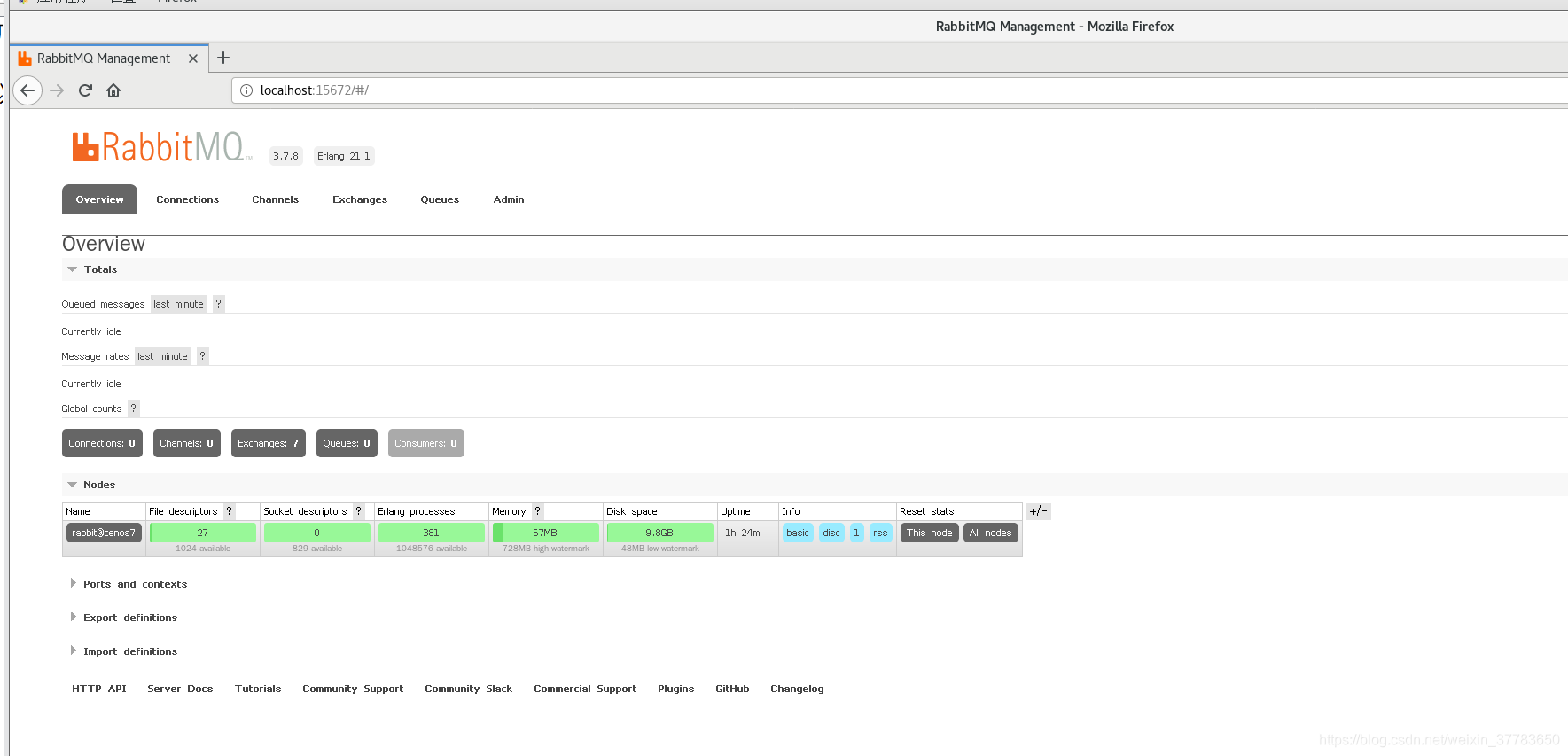 在虚拟机中安装了rabbitMQ,正常安装完成并启动,然后再centos 7中对应的浏览器可以访问,在Windows中浏览器访问失败,如下图