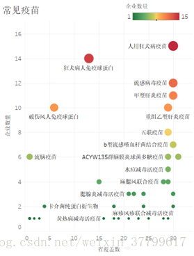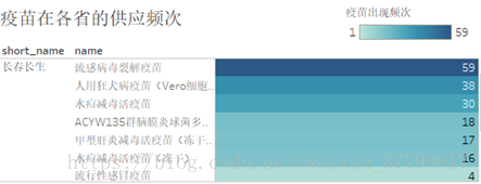 本文通过Tableau可视化了79家疫苗公司的采购数据,涵盖88种疫苗。分析显示广东疫苗采购涉及企业最多,长春长生涉及疫苗种类最多。人用狂犬病疫苗需求最高。