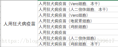 以疫苗大类中的人用狂犬病疫苗为例,我会把该疫苗的不同种类都归为一个大类,如下所示