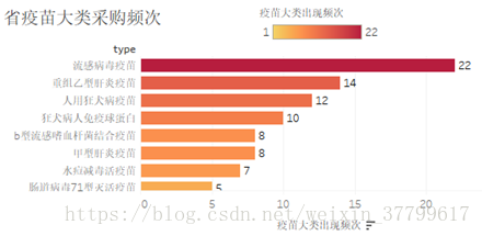 某疫苗大类在数据中出现的次数。由于数据的时间周期为一年,因此其出现的次数可以看成是某疫苗大类被采购的频次。