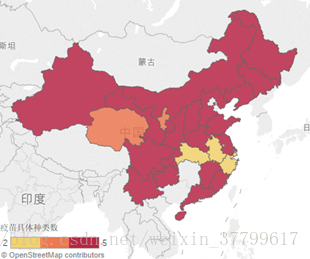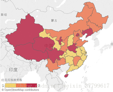 该企业生产的疫苗覆盖我国大部分的省市,并且大部分省市涉及的疫苗种类都是4-5种。可以看出该企业在全国范围内的认可度是比较高的。