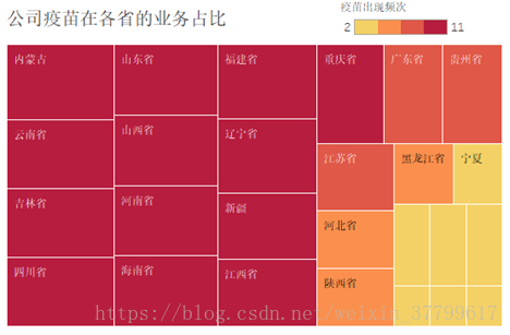 通过该企业生产的疫苗在各省的中标频次,大致推断出该企业在各省的业务占比。