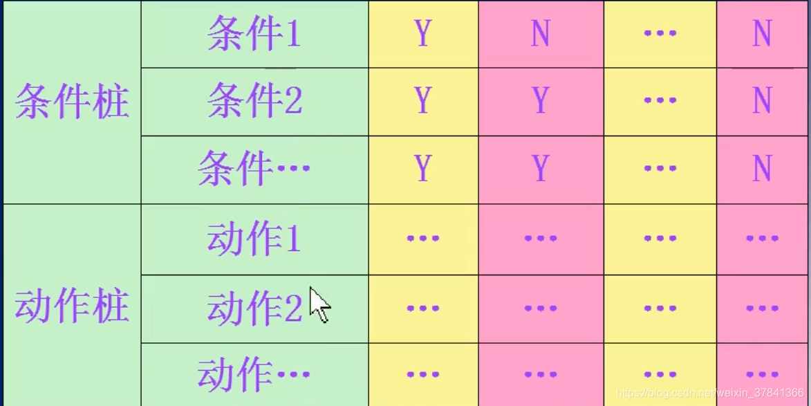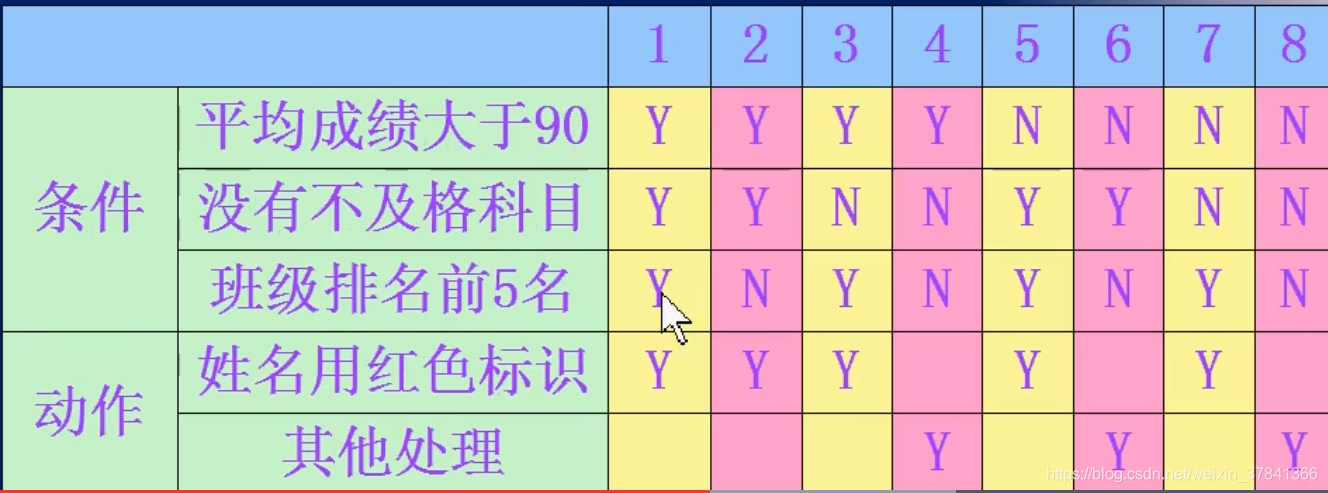 判定表(Decision table)是分析和表达较为复杂逻辑条件下软件状态和行为的有效工具。