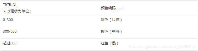 Total Block Time(TBT)总阻塞时间,度量了 FCP 和 TTI 之间的总时间,在该时间范围内,主线程被阻塞足够长的时间以防止输入响应。