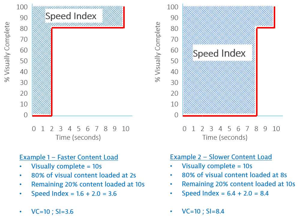 图中的 Example 1 和 Example 2 都是在 10s 时页面填充完成,但 Example 1 在 2s 时就已经填充了 80% 的内容,而 Example 2 在 8s 时才填充 80%。