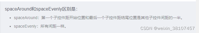 alignment 属性控制主轴对齐方式,crossAxisAlignment 属性控制交叉轴对齐方式,对齐方式只对有剩余空间的行或者列起作用,例如水平方向上正好填充完整,则不管设置主轴对齐方式为什么,看上去的效果都是铺满。