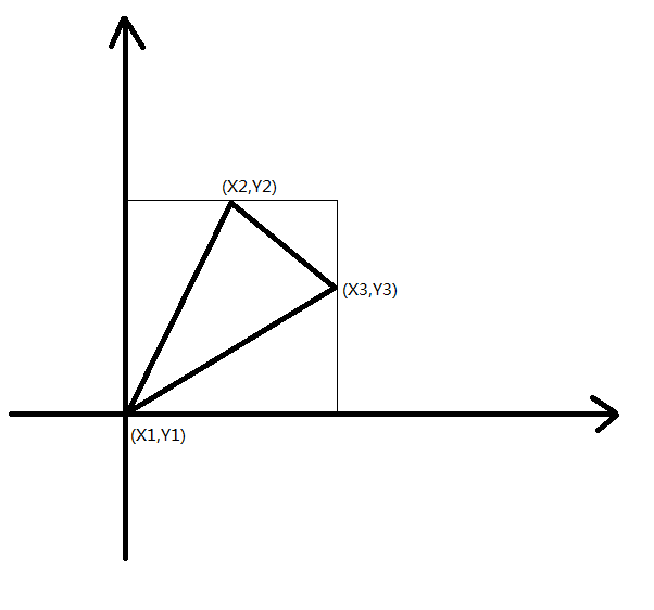 考虑令$(X_1,Y_1)$为$(0,0)$,那么最后形成的三角形就会类似于下面这样子。