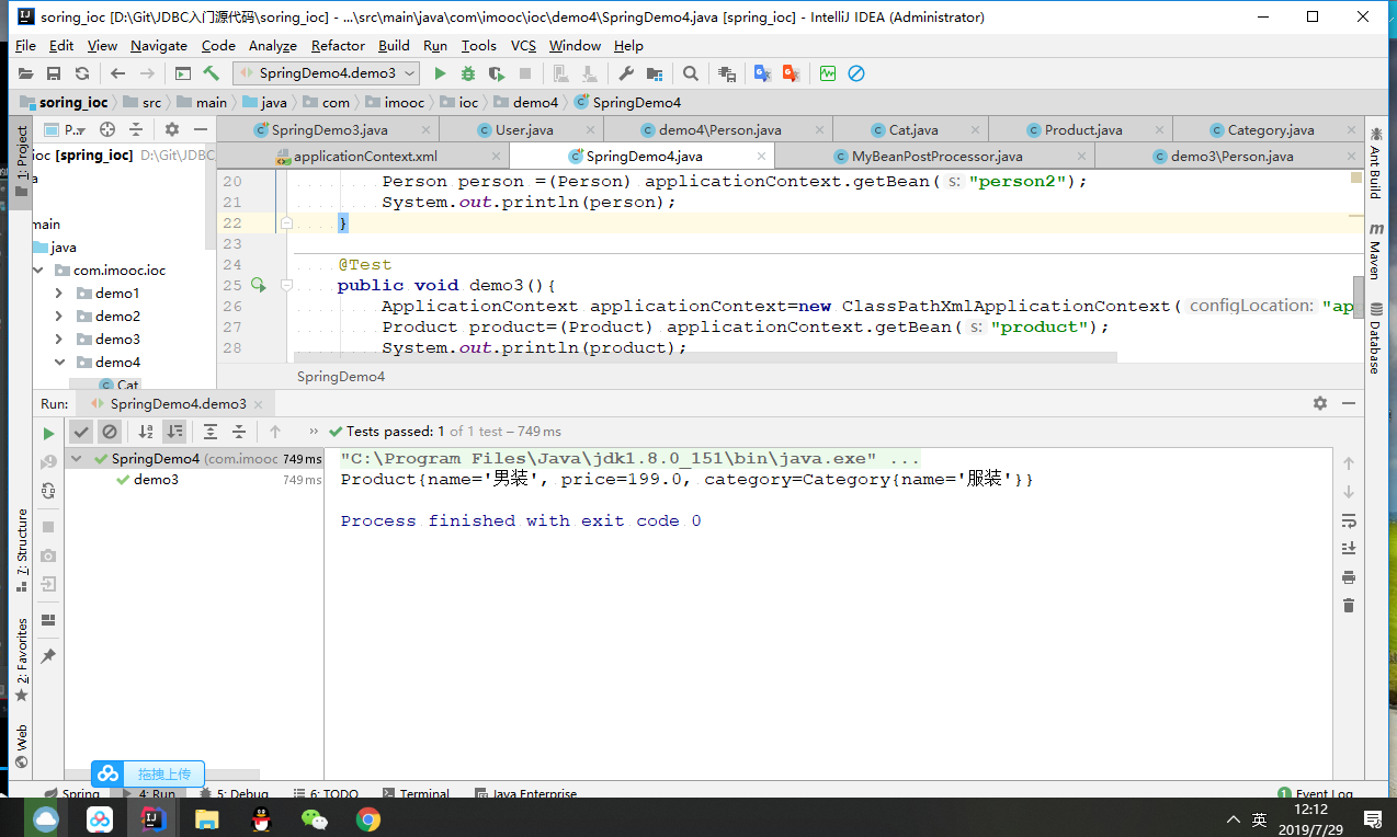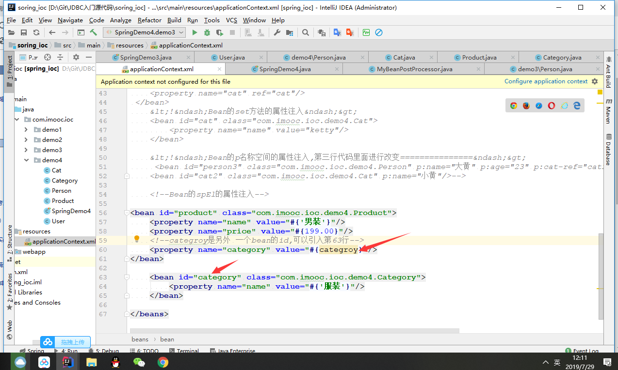 org.springframework.beans.factory.BeanCreationException: Error creating bean with name 'product' defined in class path resource [applicationContext.xml]: Initialization of bean failed; nested exception is org.springframework.beans.factory.BeanExpressionException: Expression parsing failed; nested exception is org.springframework.expression.spel.SpelEvaluationException: EL1008E: Property or field 'categroy' cannot be found on object of type 'org.springframework.beans.factory.config.BeanExpressionContext' - maybe not public or not valid?
