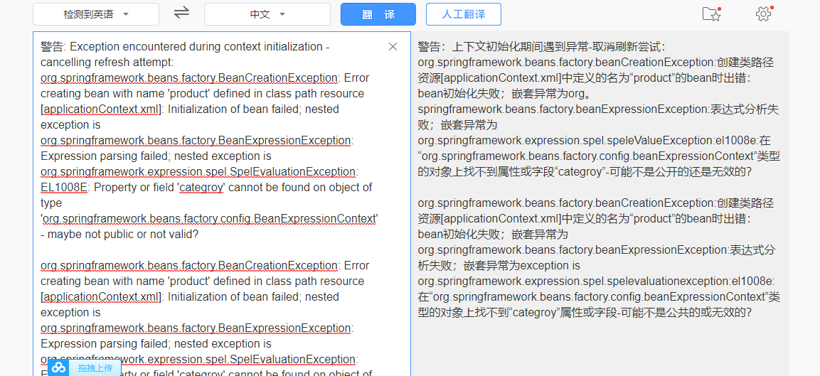 警告: Exception encountered during context initialization - cancelling refresh attempt: org.springframework.beans.factory.BeanCreationException: Error creating bean with name 'product' defined in class path resource [applicationContext.xml]: Initialization of bean failed; nested exception is org.springframework.beans.factory.BeanExpressionException: Expression parsing failed; nested exception is org.springframework.expression.spel.SpelEvaluationException: EL1008E: Property or field 'categroy' cannot be found on object of type 'org.springframework.beans.factory.config.BeanExpressionContext' - maybe not public or not valid?