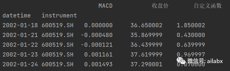 fields = [MACD_EXP, '$close', 'Distance($close,$open)']