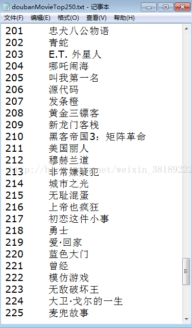 path = 'C:/Users/Administrator/Desktop/doubanMovieTop250.txt'
