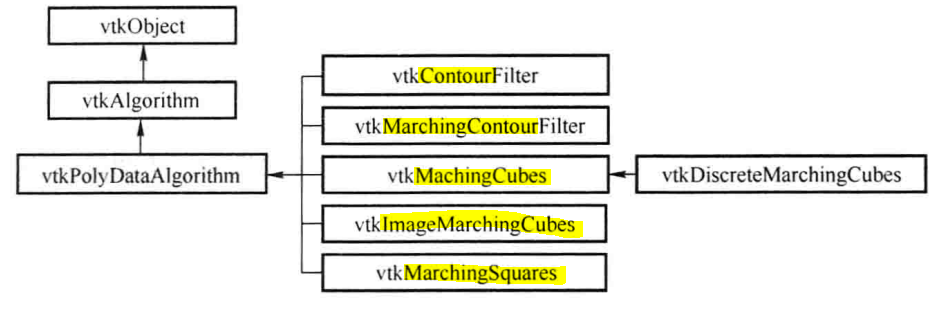 根据数据类型的不同,VTK中提供了多个等值面提取类,其类图如图所示: