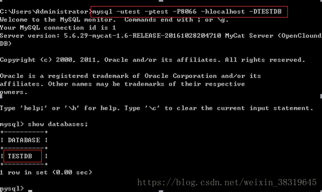 其中,逻辑数据库的名称为TESTDB,用户名、密码都为test,服务端口为8066。