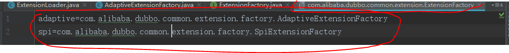 上文说到Java SPI有 /META-INF/services 这样一个目录。在这个目录下有一个以接口命名的文件,文件的内容为接口具体实现类的全限定名。在 Dubbo 中我们也能找到类似的设计。
