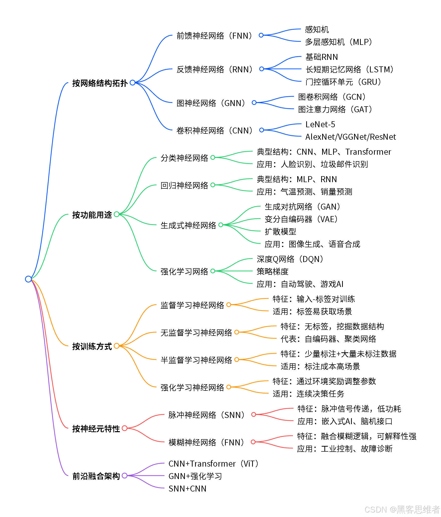 不同维度的分类相互补充,能帮我们更全面地理解神经网络的应用场景。