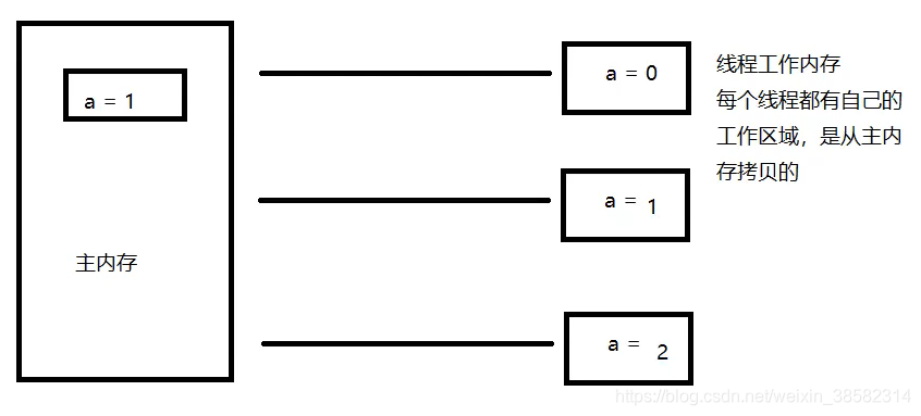 上述定义的理解:见下图。主内存的一个数,在各个线程中都拷贝了一份。