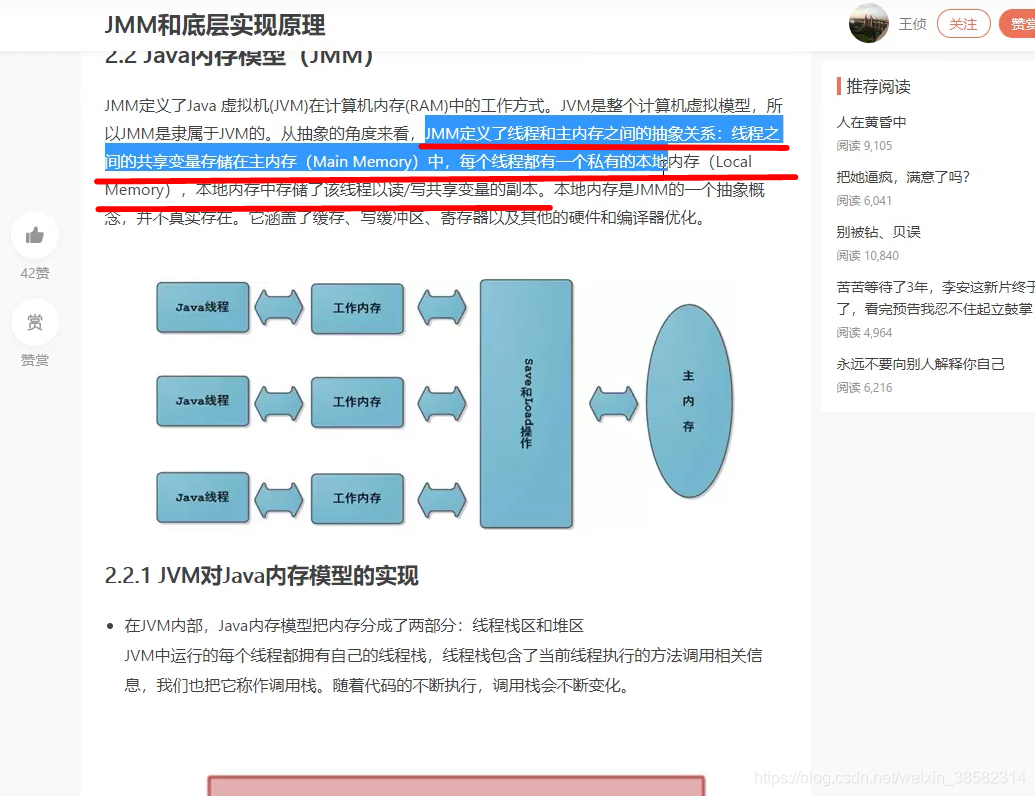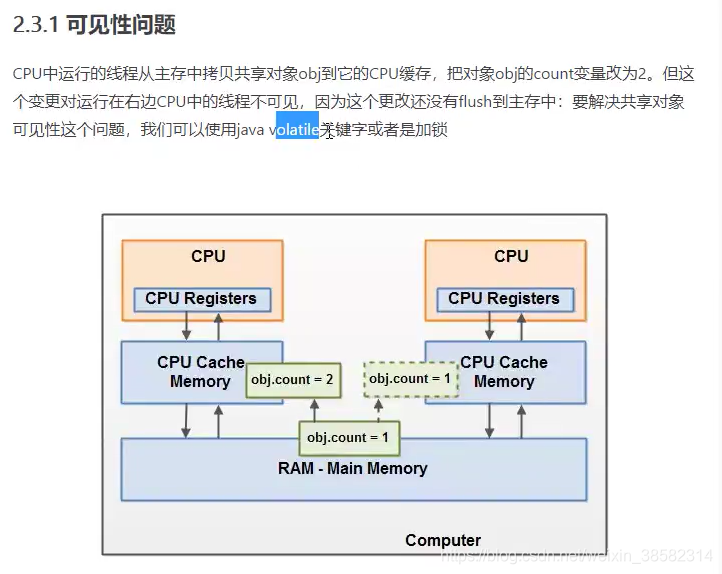 JMM是抽象的概念,理论,那么看到多次volatile,所以学习volatile。再看看其他人的博客,又提到了可见性,写完了代码,立马刷新进主内存。volatile保证可见性,不保证原子性。