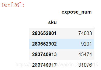 df.groupby('sku')['expose_num'].agg(np.sum)