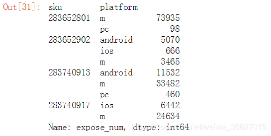 df.groupby(['sku', 'platform'])['expose_num'].agg('sum')