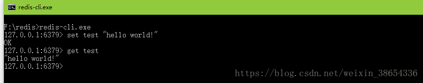 此页面为成功运行redis,此时,不要将黑框终端关闭,关闭后将会停止运行Redis,此时应该重新打开一个cmd终端