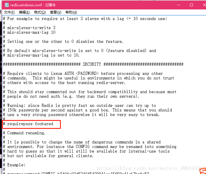 关注标记的那一行,#requirepass foobared。设置密码的方法就是去掉注释的#,把foobared替换成自己的密码即可,例如将密码设置为sunck