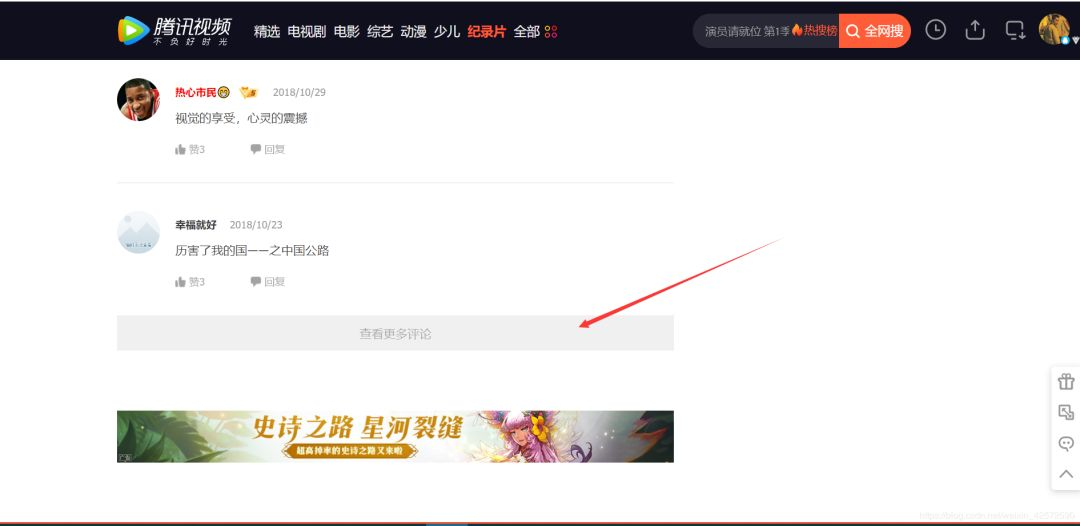 声明:本次爬取腾讯视频里 《最美公里》纪录片的评论。本次爬取使用的浏览器是谷歌浏览器