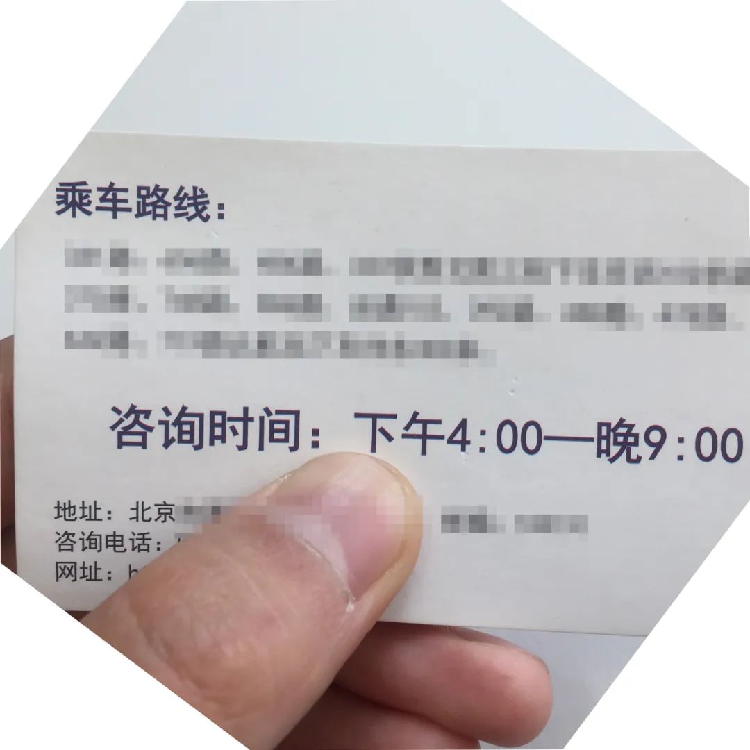 我挪完车后刚把朋友孩子的情况跟他说完,他说这儿童门诊的号不好挂,想要号的话,就今天可以提前找我预定。嘿,还能预定。我说那得多少钱?儿童门诊专家杨**800块,是服务费,挂号的钱您再额外出。我心想,这也太贵了。能便宜点吗?黄牛抽了一口烟,慢悠悠地说,儿童专家号不好挂,都是这个价。说完他就眼望天。太贵了,我说考虑考虑。黄牛从兜里拿出一张“名片”递给我,说要号的话就打电话,最晚明天早晨,不然就没了。我接过名片,就开动车了。