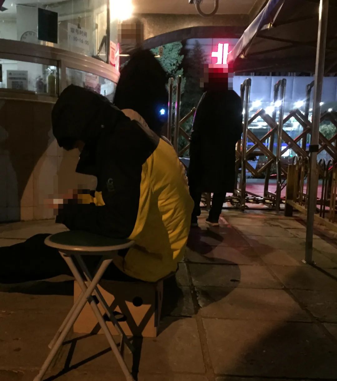 4月初的北京白天还好,凌晨真的是挺冷。我坐在从家里带来的小板凳上,开始打盹,前面的六个人也都静默不语。迷迷糊糊坐在小凳子上也不知道是过了多久,我看了看手表,才过了二十分钟。太难熬了。我开始观察前面的几个人。最头上的两个人把自己用帽子围巾过得严严实实,头碰头在窃窃私语。第三个人在刷手机,第四个人在打游戏,是个小伙子,第五个人是个老爹爹,坐在纸板上,第六个是个中年男子,在刷短视频,声音老大。