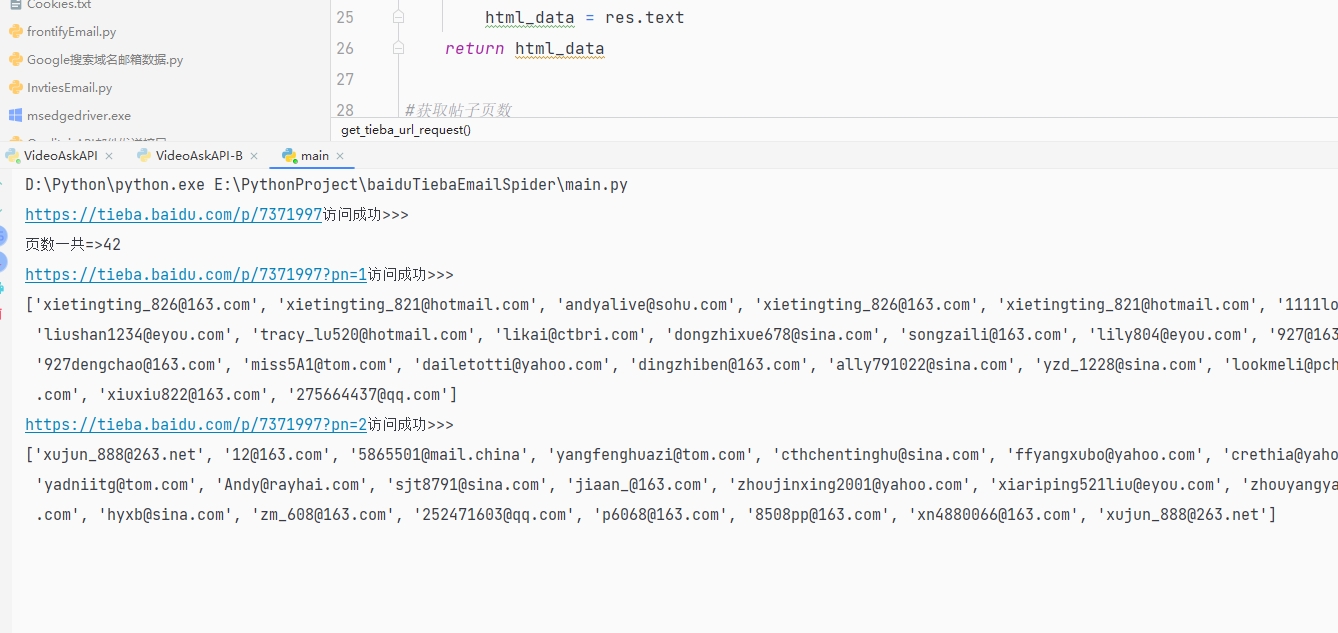 之前有一个小业务,需要进行批量邮箱协议群发,然后需要采集一些真实的邮箱数据,最后想了一下让用户自己留下的基本上都是真实的,tieba又属于一个流量比较大的地方,后来就写了一个小教本进行测试;工具还可以进行继续的延伸,比如说批量采集帖子,或者说直接 输入某个贴吧名后,直接把这个吧里面的所有帖子都采集一次;其实也有比较大的风控,所以cookie 需要自行去解决。