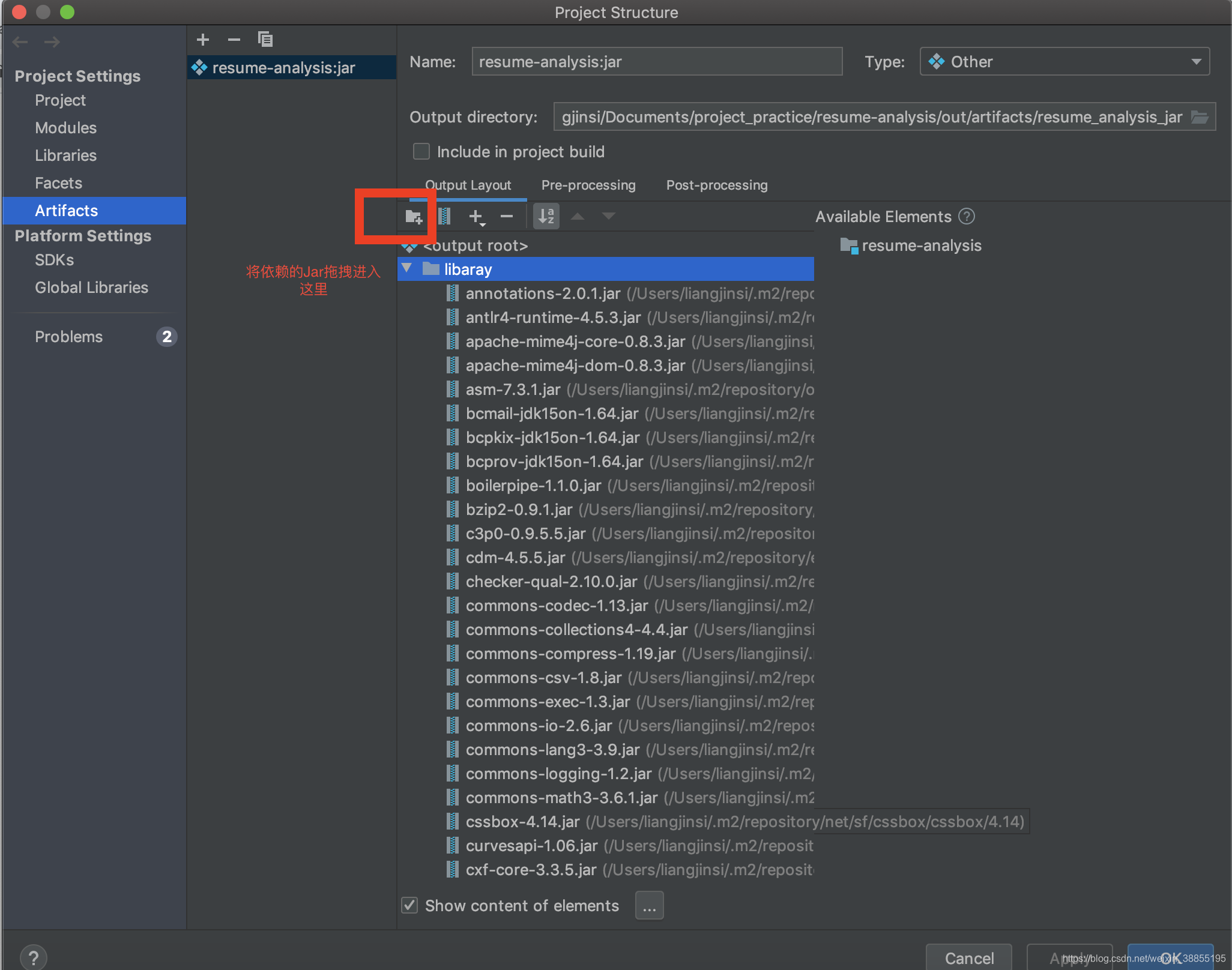 3.新建一个libaray文件夹,将使用到的其他jar包全部放进去,并修改生成jar包的依赖路径
