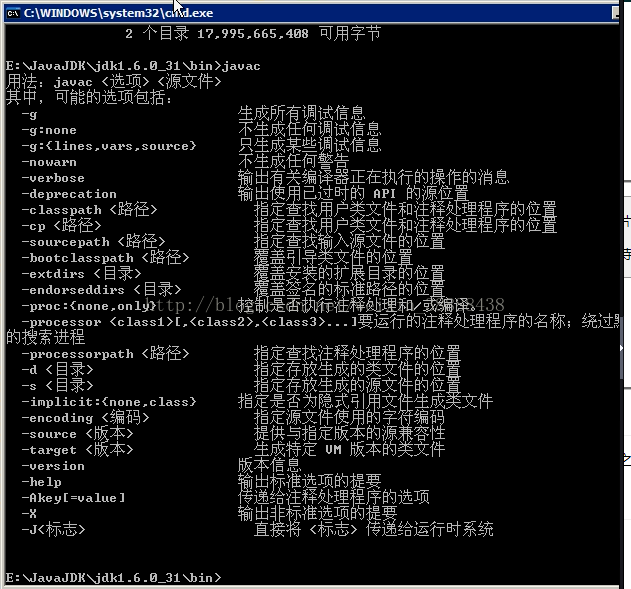 可以先尝试自己使用DOS打开Javac.exe,带开后如下图