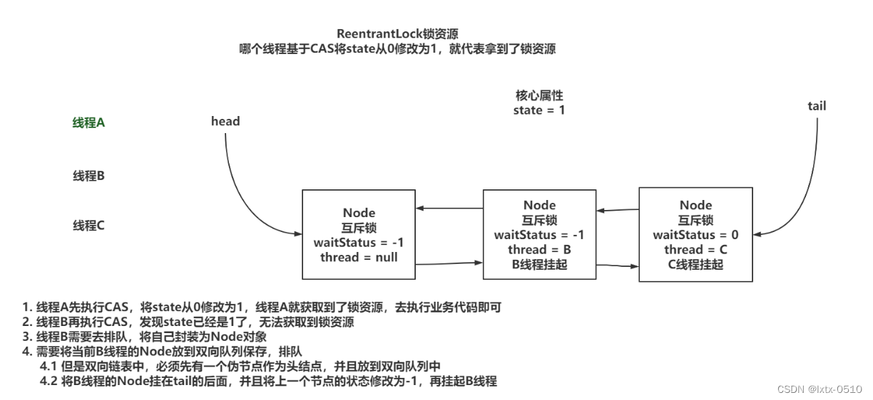 将没有拿到锁资源的线程扔到AQS队列中去排队