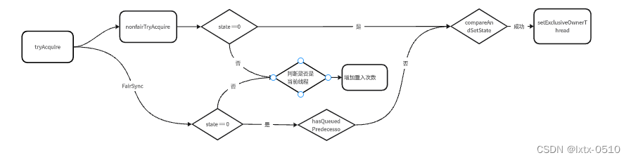 // tryAcquire分为公平和非公平锁两种执行方式,如果拿锁成功, 直接告辞,