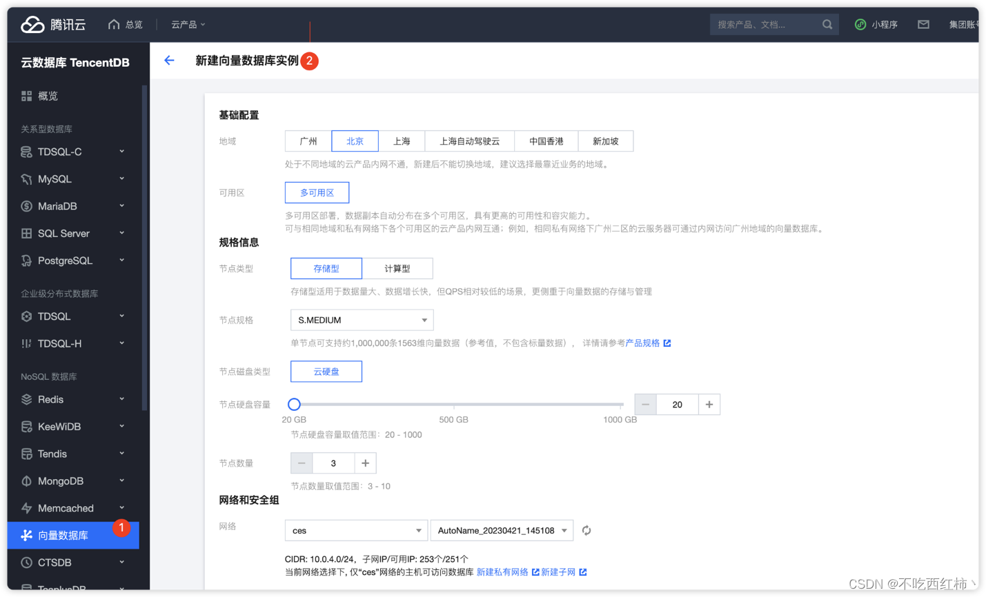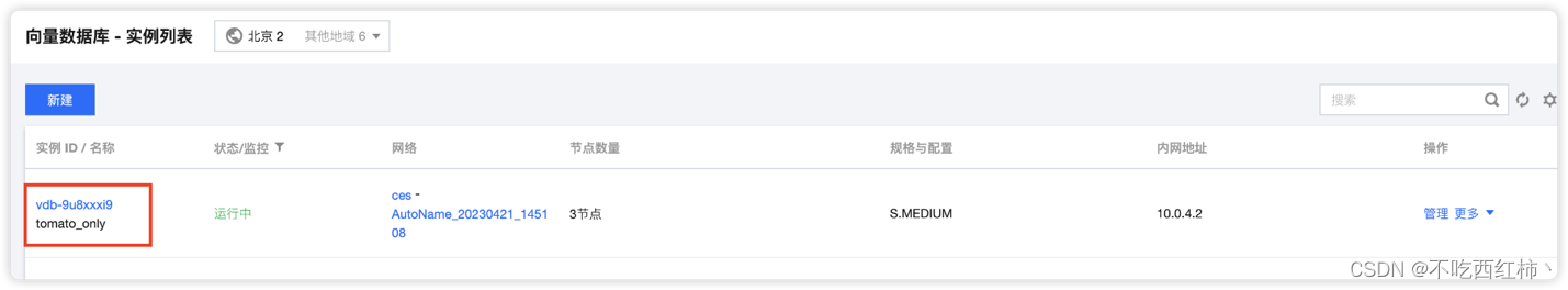 - 2、创建向量数据库:从腾讯云控制台 一键创建 向量数据库实例。