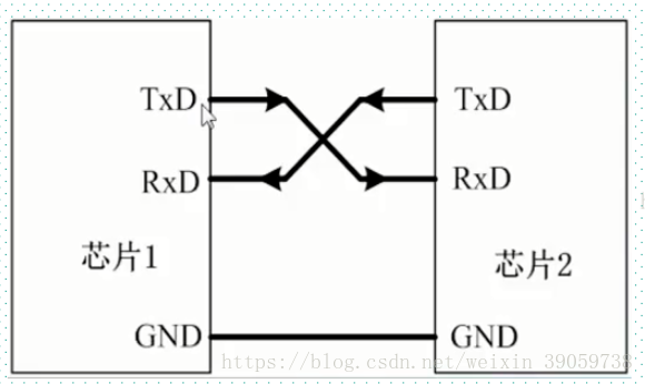 如上图所示,进行数据传输时,TxD用于数据的发送,RxD用于数据的接受。