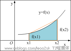 如图2所示,蓝色部分是x1到x2积分的精确面积,而在梯形插值中,用橙色框所示的梯形面积近似估计积分值。
